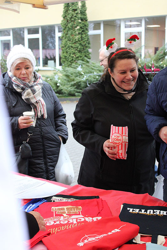 Auch kulinarisch ließ der Weihnachtsmarkt keine Wünsche offen: Knacker und Grünkohl, eine Gulaschkanone, Zuckerwatte und Popcorn luden zum Genießen ein. An den Marktständen präsentierten unsere Beschäftigten mit viel Liebe gefertigte Handwerkskunst, darunter selbstgemachter Schmuck, Keramik- und Holzarbeiten.